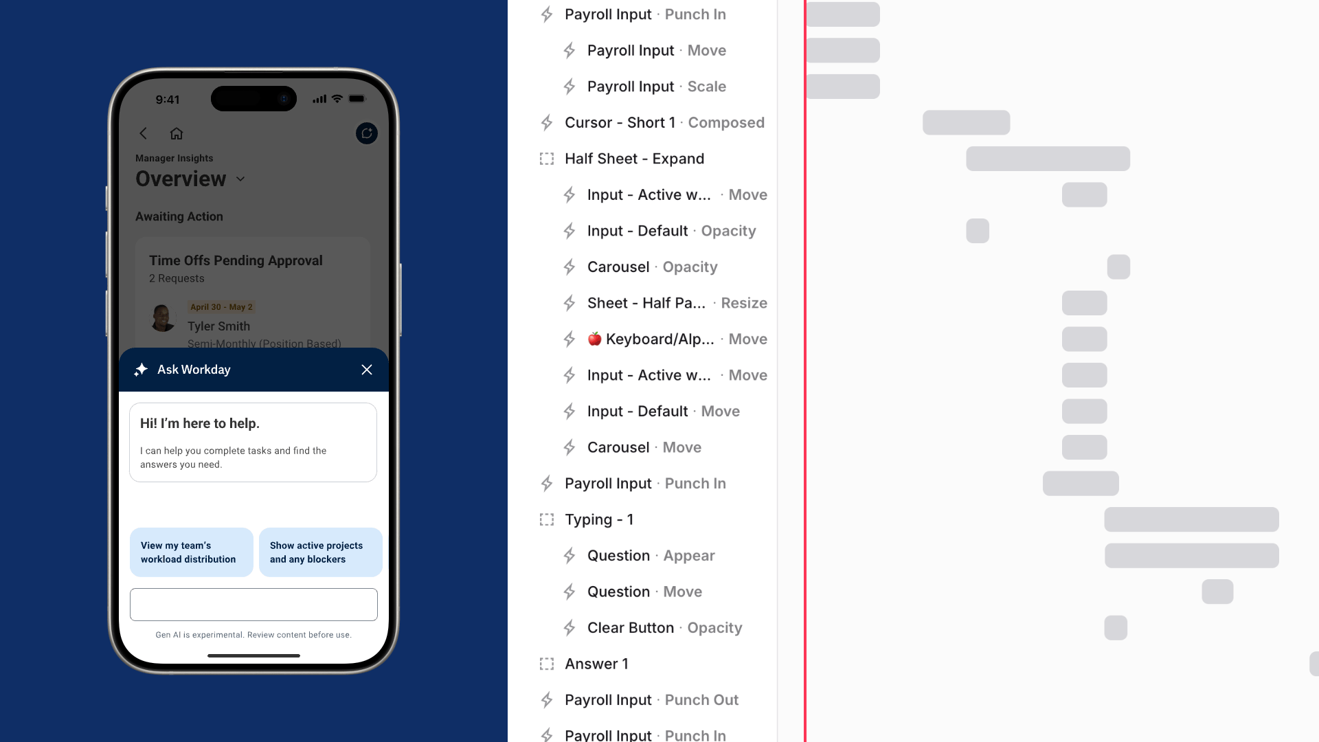 I joined the animation team to learn Jitter and bring our Figma prototypes to life for Rising 2025. In one week, I learned/created motion sequences that clarified complex payroll workflows and highlighted the impact of our new AI features. Something static screens and recordings couldn’t do.