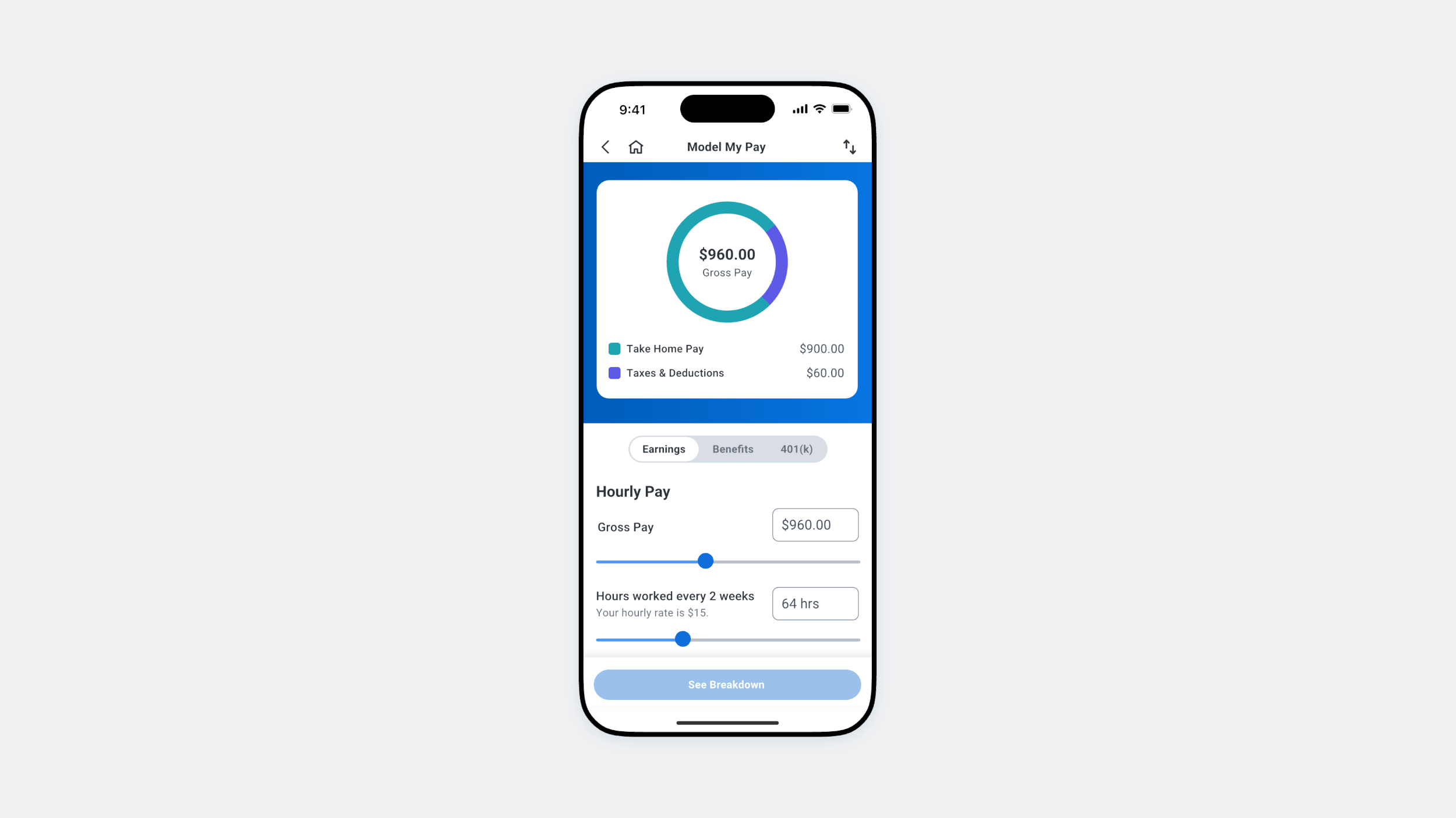 to design a simple, intuitive experience that lets employees explore their pay with confidence. Inspired by apps like Lemonade, Zebra, and mortgage calculators, I streamlined interactions and modernized the interface to create an experience that feels human, approachable, and built for everyday users.