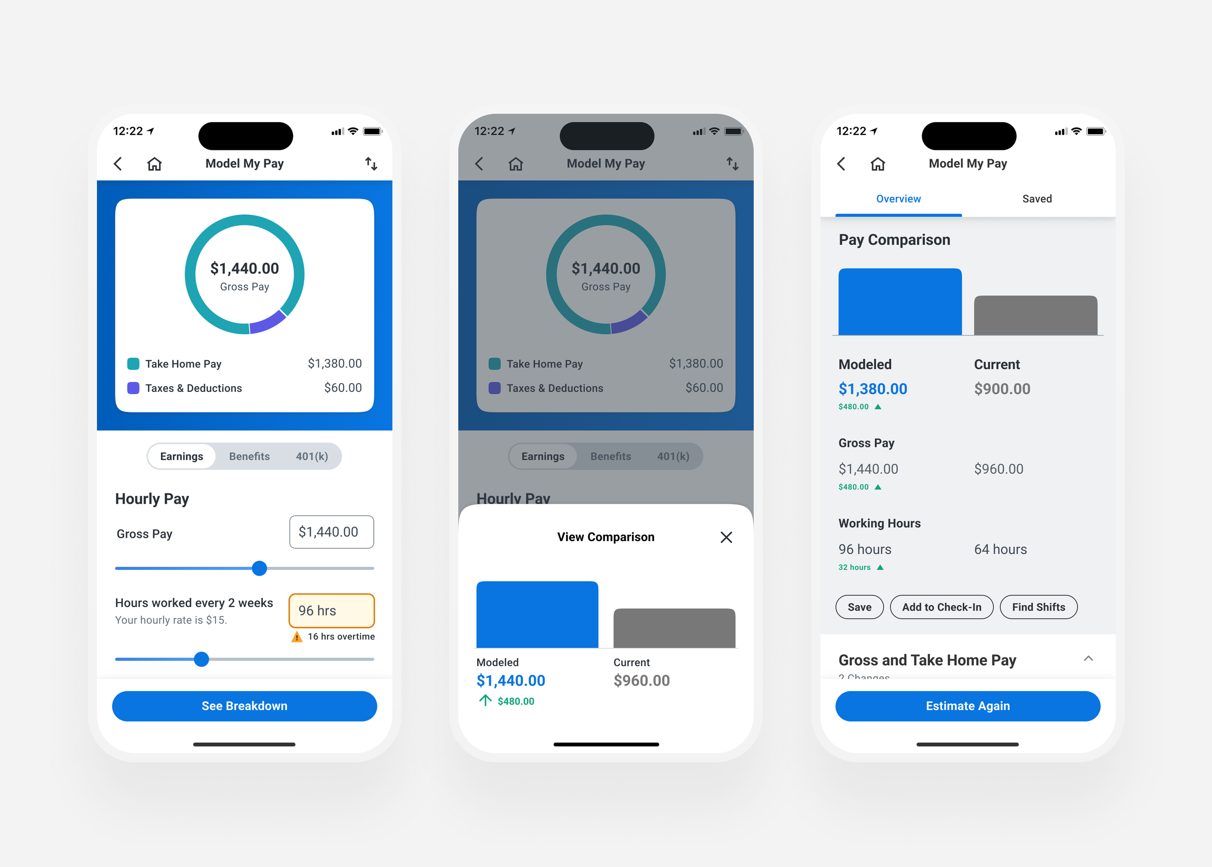 I helped redesign Model My Pay to make it easier for employees to understand how changes to their pay, benefits, or deductions affect their take-home income. Focusing on casual users, we simplified the flow for both mobile and desktop to create a more approachable, intuitive experience that helps people confidently explore βwhat-ifβ pay scenarios and make smarter financial decisions.